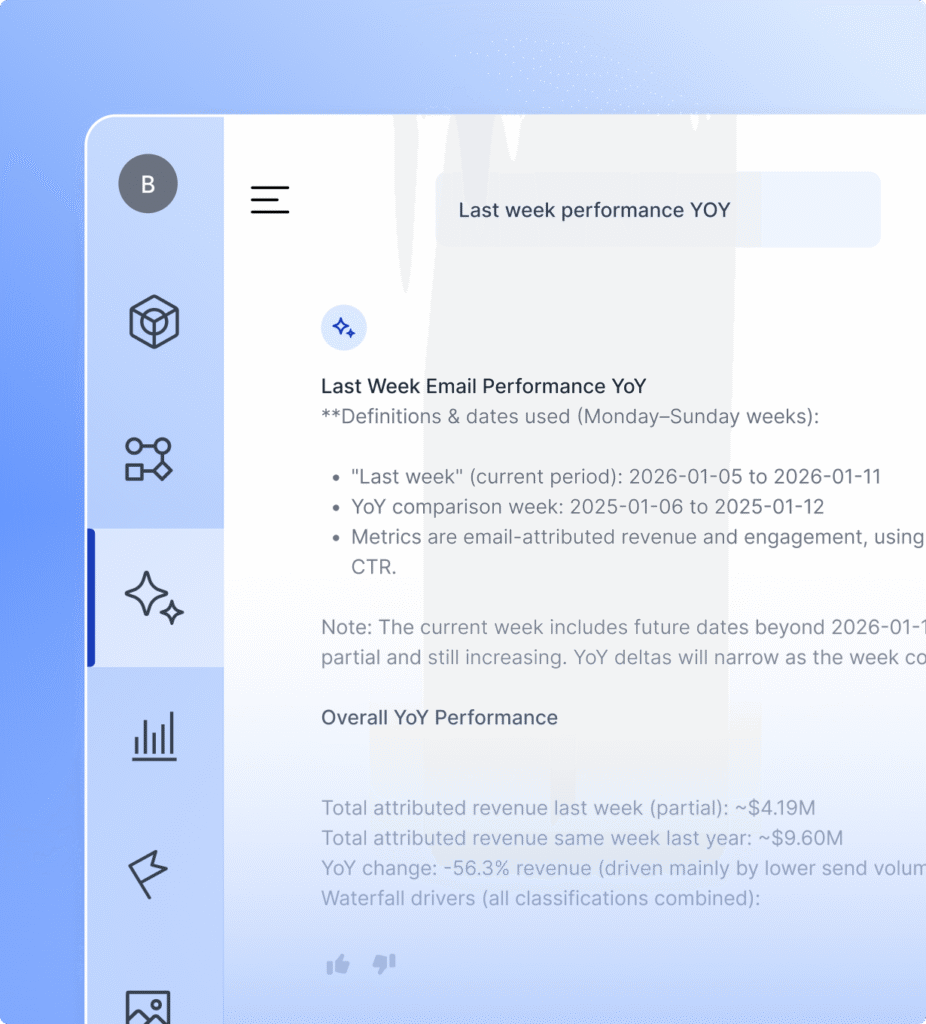 Built to understand retail-specific metrics like “carted trigger journeys,” and “YoY same-day comparisons.”